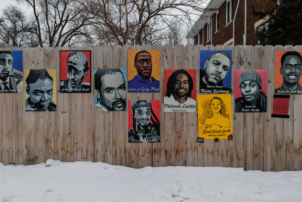 当地时间2026年1月18日,美国明尼苏达州明尼阿波利斯,人们在悼念地点悬挂蕾恩·妮科尔·古德海报,其他海报是被移民执法杀害的人。视觉中国 图