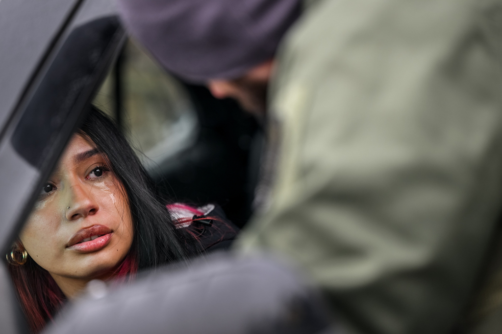 当地时间2026年1月10日,美国明尼苏达州明尼阿波利斯,一名女子被美国边境巡逻队特工盘问。视觉中国 图