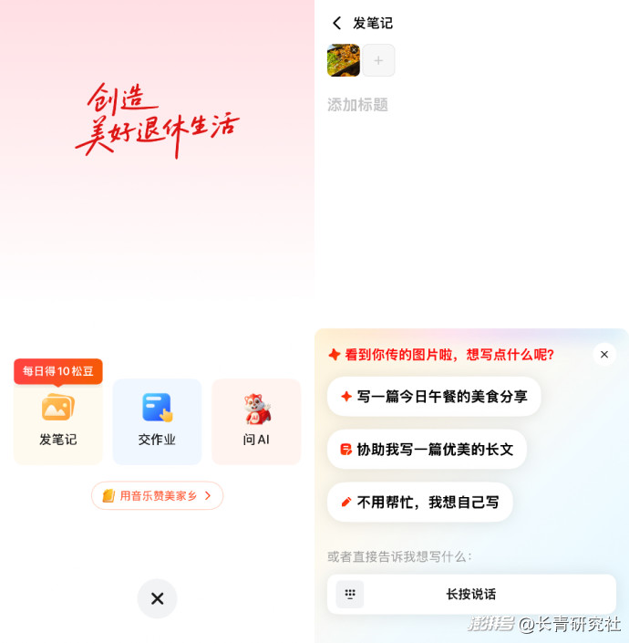 更重要的是,对社区的理解早已内化为一套产品方法论。无论是 AI 辅助创作的分寸把握,还是互动节奏与连接逻辑的设计,都源自对退休人群心理需求的长期洞察。这种能力无法通过短期投入或功能复制获得。