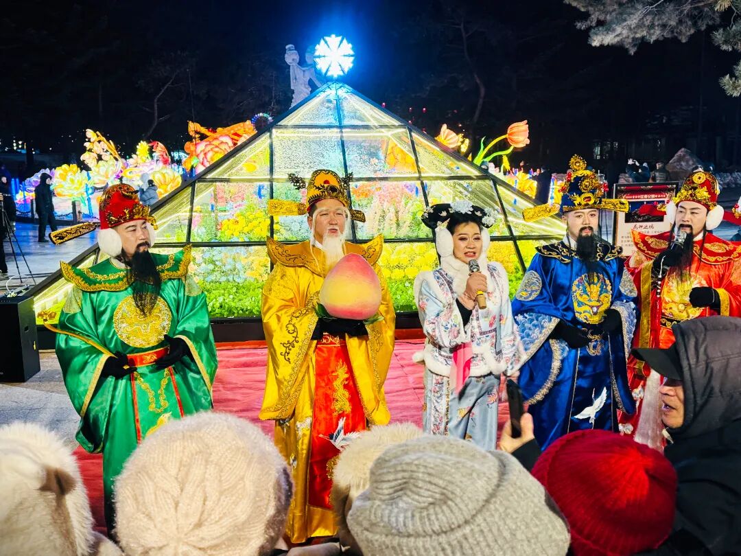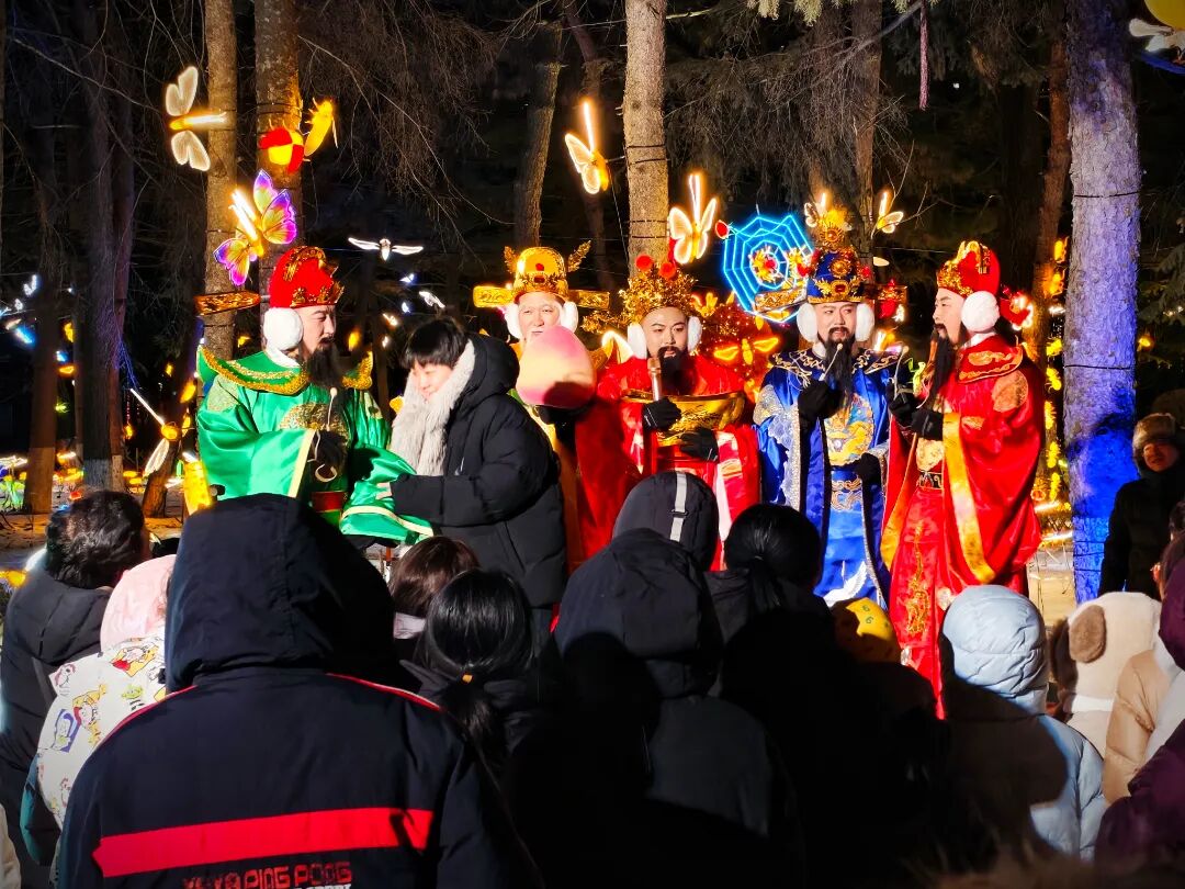 新春灯会不仅可赏,更可互动体验。在现场,热闹喜庆的新春贺岁主题巡游演艺吸引了游客和市民。身着满族服饰的格格和扮成神话人物的演员组成的队伍沿主路行进,在“花神之境”“乌拉格格”“云镜仙台”等多处特色灯组点位与观众互动演出、打卡拍照,载歌载舞,喜庆欢腾,让游客在漫步观灯的同时,沉浸式感受浓郁的节庆氛围。