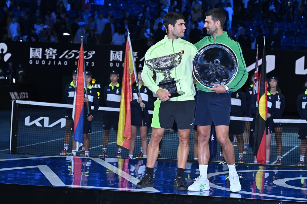 2月1日晚的澳网男单决赛,22岁的阿尔卡拉斯与38岁的德约科维奇站在了球场两端,最终是年轻人以3比1收获胜利。