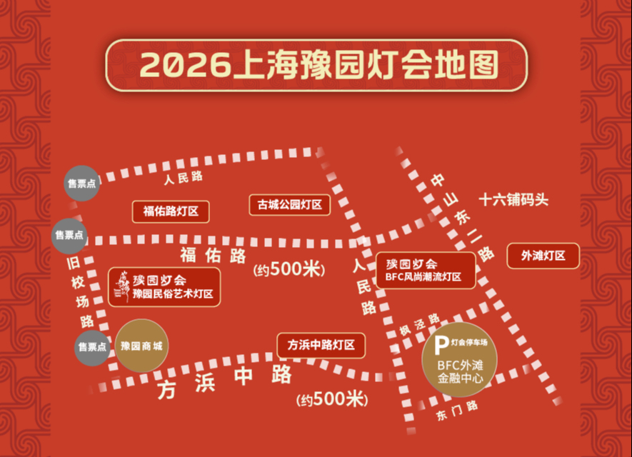豫园灯会六大灯区线路图。