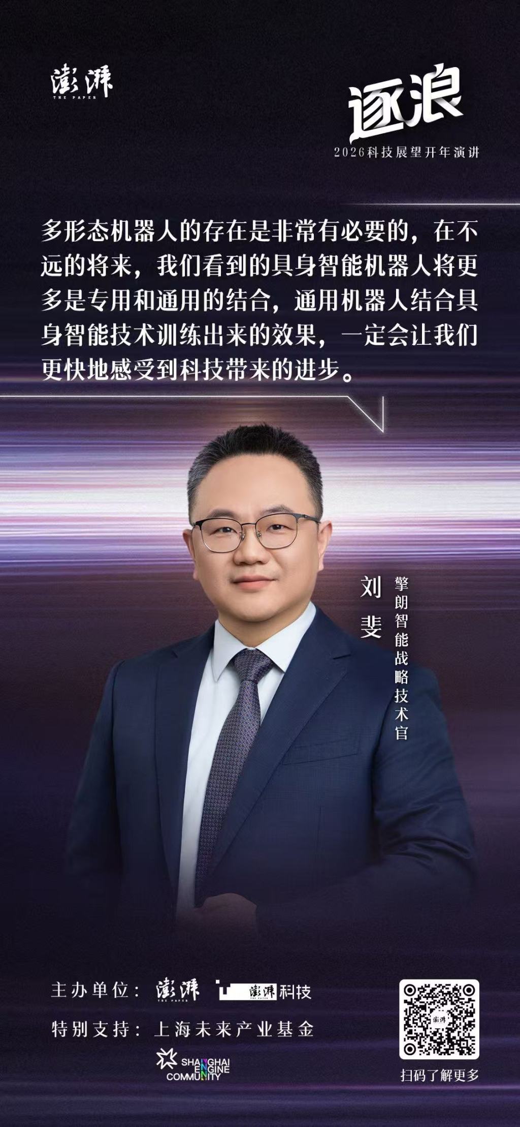 1月29日,在澎湃新闻(www.thepaper.cn)于上海举办的“2026科技展望开年演讲”上,上海擎朗智能科技股份有限公司(以下简称“擎朗智能”)战略技术官刘斐围绕“具身智能的能与不能”展开分享。