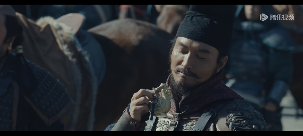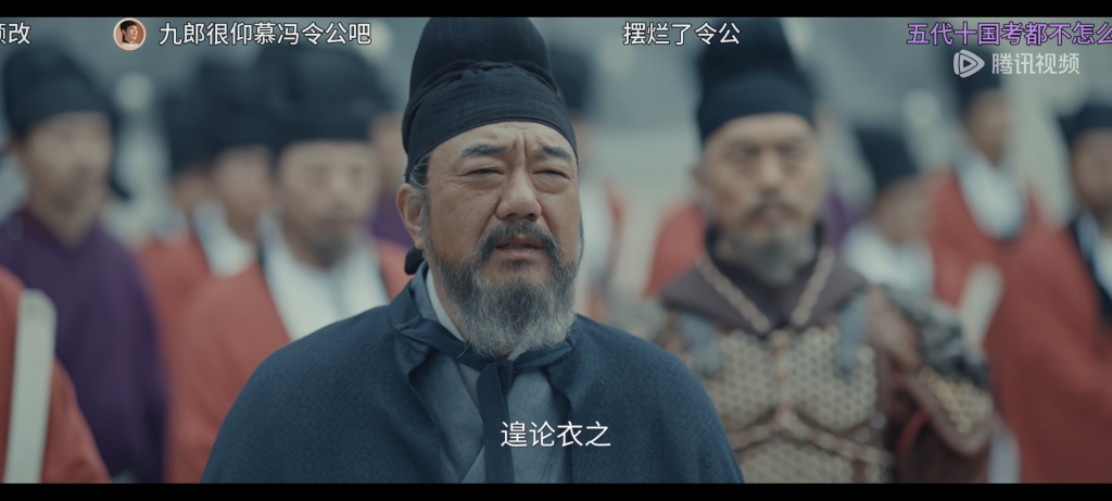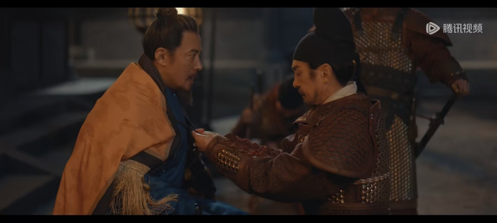 蔡泽鸿:如我们前面所说的,由于唐高宗时期,将赭黄色垄断为皇帝专用,逐渐变成了皇权的象征。历史中,唐末牙兵经常为了一己私利,强行火并换将。军阀混战之中,节度使们经常是轮流当皇帝,后周太祖郭威,就是“黄袍加身”这个故事的首创者,赵匡胤则经典复刻,成为后世的案例。剧中,还没到推进郭威的剧情,给刘知远批上黄色纛旗,应该是为了提前给赵匡胤一个学习的对象,颇有戏剧手法。