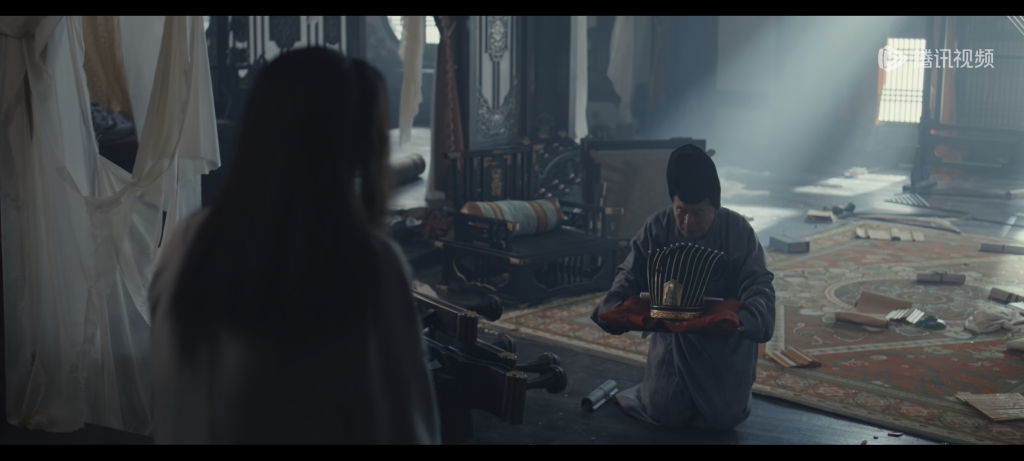 澎湃新闻:紧接着这个剧情的是《太平年》中被讨论非常多的“牵羊礼”场景。关于牵羊礼的呈现,以及后晋皇帝石重贵当时所穿的服饰,可否介绍和评价一下?