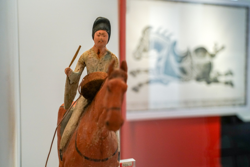 展览现场  唐骑马击鼓俑 甘肃省文物考古研究所藏