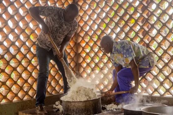 现在非洲许多国家都有了用木薯粉与玉米粉调和制成的fufu粉,食用起来更加便捷,加入热水搅拌凝固就能吃,和冲泡藕粉一样。