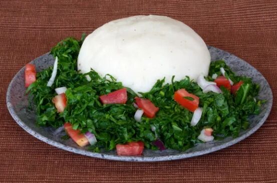 Ugali搭配羽衣甘蓝和洋葱制成的菜肴|Wikipedia/Paresh Jai