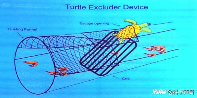 海龟逃逸装置是种安装在捕虾网上的简单物理栅栏。你可别小看这个装置,因为想要在全球范围的渔船上普及这个装置,可不是简单的技术普及,而是从海洋保护到建立全球化渔业标准的宏大社会工程。