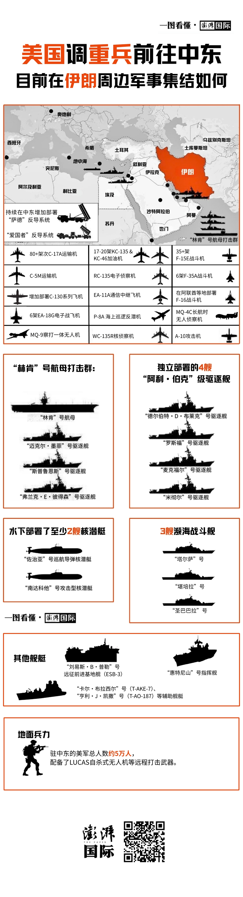 一图看懂|调重兵前往中东,美军目前在伊朗周边军事集结如何?