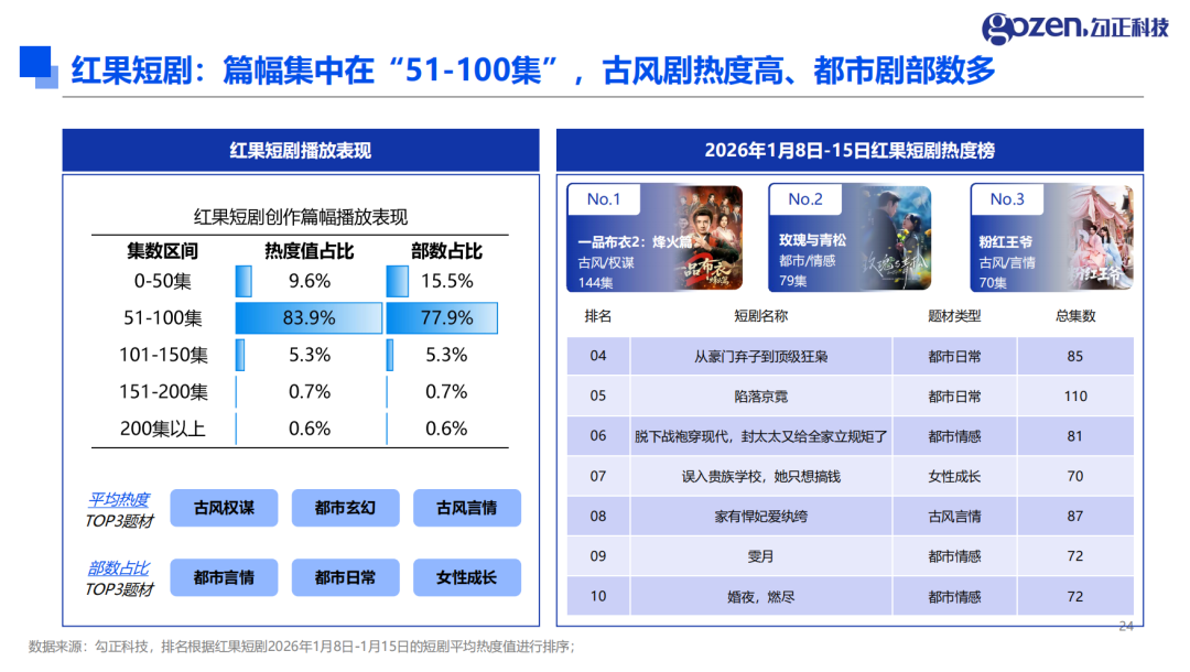 内容市场:题材聚焦情感共鸣,集数呈现两极分化