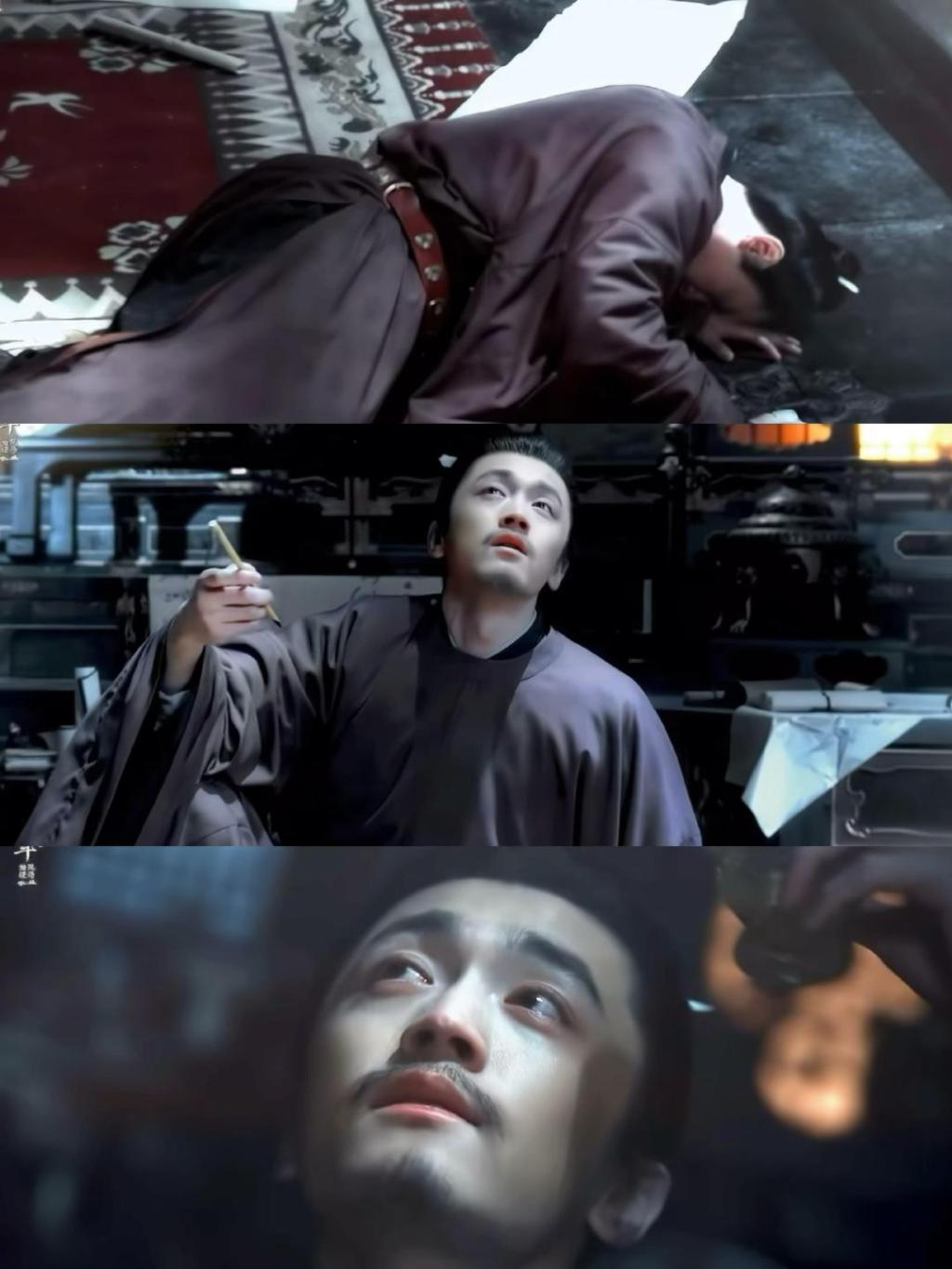 这个短暂的镜头,捕捉了李煜作为文人帝王特有的脆弱感、破碎感和被命运裹挟的悲凉。