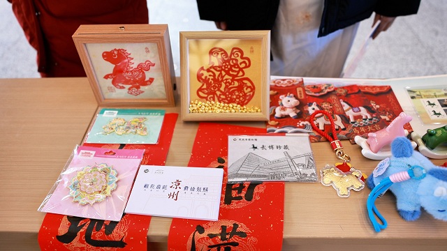 启动仪式在非遗剪纸服装秀中拉开帷幕,表演者身着非遗代表性传承人设计的红色剪纸长袍惊艳亮相,展现了剪纸艺术与时尚元素的完美融合。活动现场,凉州区和武威市属各景区还开展了马年文创展销和文旅宣传推介活动,向广大旅客赠送春联、福字和马年生肖剪纸。活动不仅为游子送去家的温度、家的味道、家的回忆,还将武威文旅的优惠和祝福带往全国各地,诚邀天南海北的旅客来武威看美景、赏非遗、品美食、过大年。