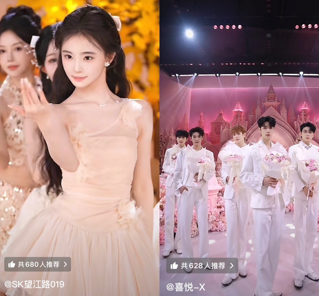 还有“人气王”环节——谁票高谁就赢,会直接影响第二天能不能站C位。比如,有的环节是“跑车换C”,谁收到一辆跑车礼物,谁就能在C位跳一段。