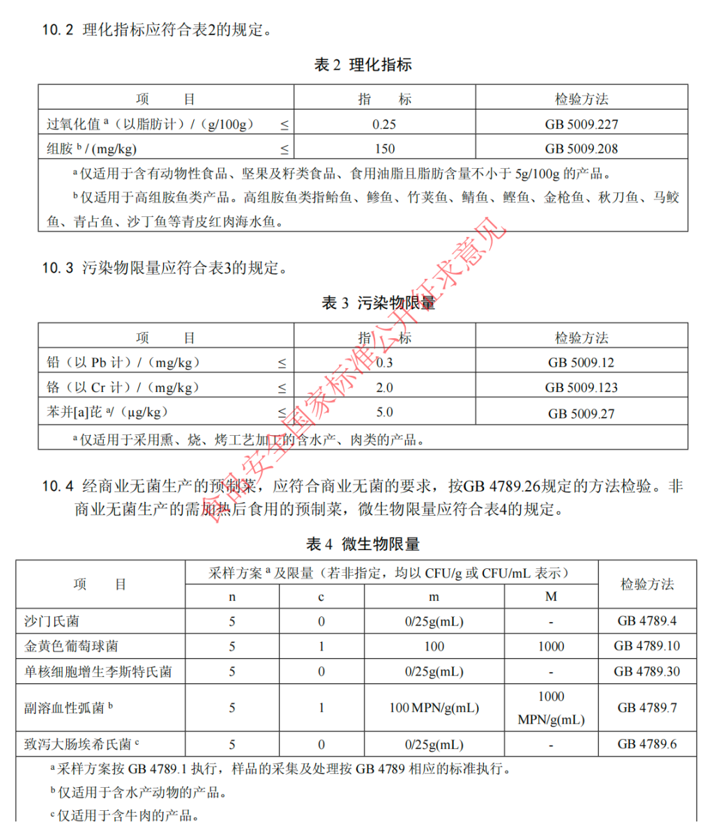 此外,标准详细规定了标签标识。例如,标示产品贮存条件、食用方法等信息,其中预加工已熟制的产品,应标示“需加热或复热后食用”;预加工未熟制及未完全熟制的产品,应标示“需熟制后食用”,对于不能与产品一起加热/熟制的包装材料也要在产品显著位置明确提示。同时,标准提出预制菜产品的外观、色泽、形态、杂质、滋味、气味等感官要求,明确铅、沙门氏菌、组胺等预制菜产品中重要的安全品质限量规定。