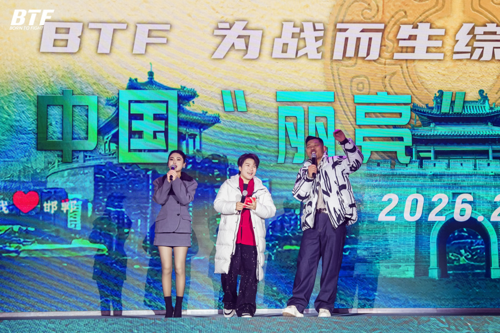 2月7日,河北邯郸市邯郸道历史文化街区丛台迎宾馆金色大厅内灯光聚焦,由综合格斗世界冠军张伟丽创立的“BTF综合格斗冠军赛”(BORN TO FIGHT MMA CHAMPIONSHIP)在此举行赛前称重仪式。
