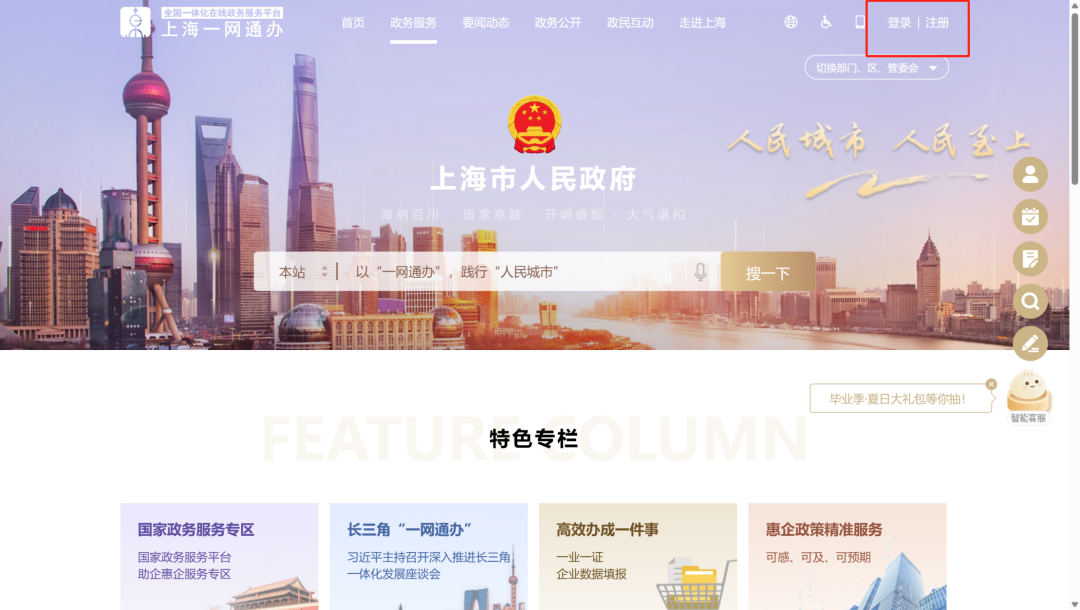 一网通办页面点击登录