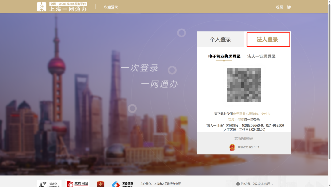 法人登录页面使用电子营业执照或者法人一证通登录