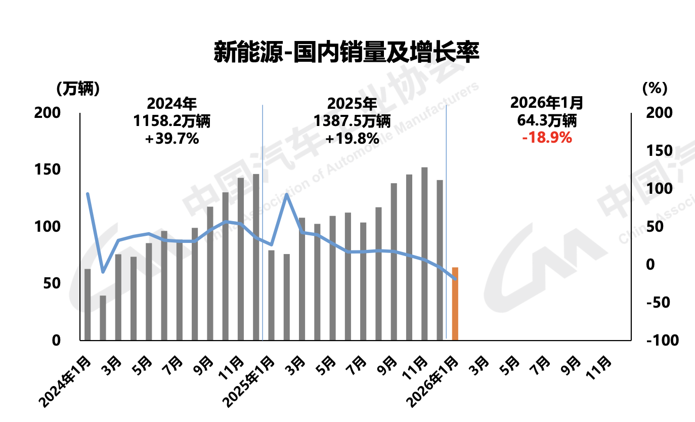 中汽协:1月新能源汽车国内销量同比下降18.9%,出口翻倍