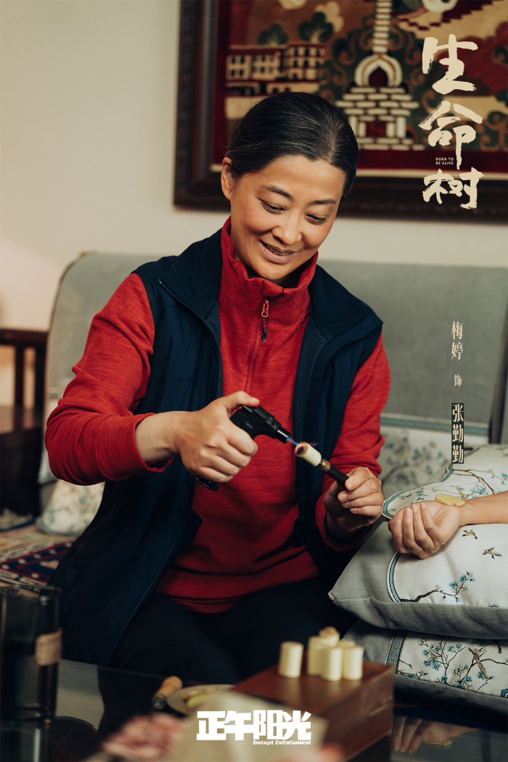 如果说俞大娘子是“云端之上”的鹰,那么《生命树》中的张勤勤则是“泥土之中”的根。梅婷饰演的是一位援藏医生,同时也是女主角白菊的养母。行医时,她是果敢坚毅的院长,每一场戏,台词动作都干净利落,即使医务人员紧缺,也从不言辛苦,作为牧民们的“康卓玛”兢兢业业坚守一线。在家中,她是温柔体贴的唯一大家长,拉扯着四个儿女对抗着高原的艰苦环境。