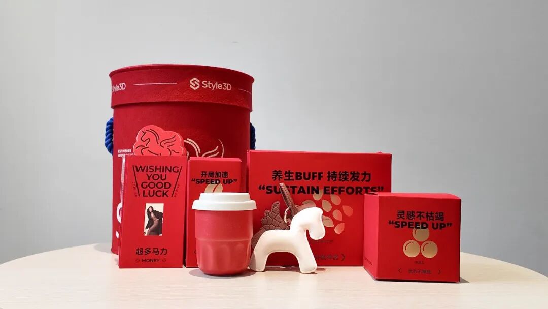 作为凌迪科技旗下的企业服务品牌,Style3D今年把科技潮流感和新春氛围感拿捏得恰到好处。在一众方方正正的礼盒里,它的圆柱形桶装外观绝对是独一份的吸睛存在,从设计到内容都显得时尚又独特,拆开满是惊喜。