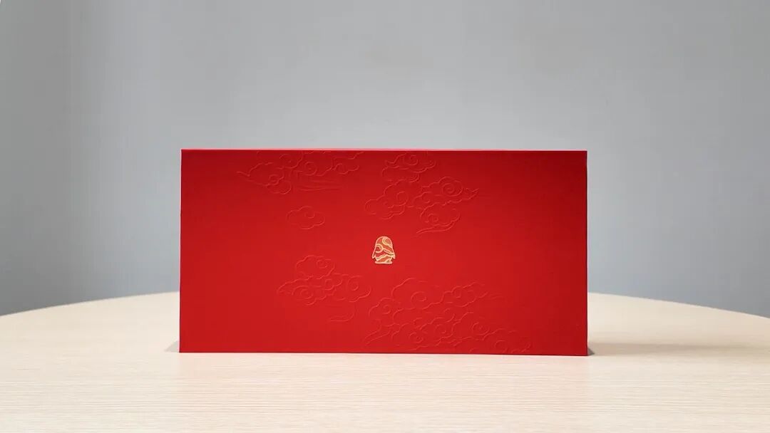 腾讯今年的新春礼盒走的是极简路线。通体正红,盒面只留云纹暗纹与一个低调的小标识,没有大面积金字,也没有复杂插画。