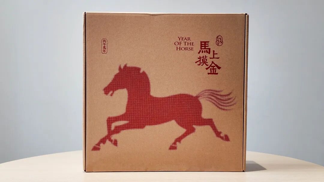 巨人网络的礼盒“马上摸金”,看到“金”,我们的兴趣一下子就被提起来了。众所周知,去年一年,黄金的价格高开疯走,这时节想搞点金子在手可不是一件简单的事。礼盒的外壳是牛皮纸质地,低调朴素,一匹奔腾的红马,简单直接。