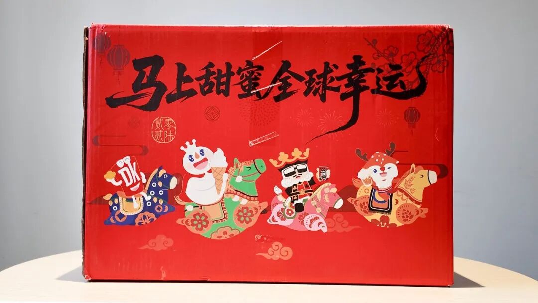又来一位重量级!蜜雪冰城的礼盒大到两只手抱起来都有些费劲,整体风格更是把对马年“甜蜜+暴富”的期待展现得淋漓尽致。