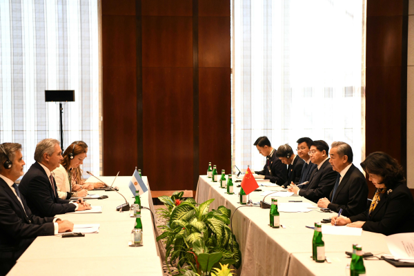 王毅表示,双方要坚持双边关系正确发展方向,带动各层级各领域友好交往,在涉及彼此核心利益问题上坚定相互支持。中阿经济互补性强,务实合作基础扎实。要深化经贸、科技、金融、矿产等领域合作。欢迎阿方用好进博会、广交会等平台,助力更多优质产品进入中国市场。希望阿方为中国企业提供公正、透明、非歧视的营商环境。欢迎阿根廷民众用好免签政策,来一场说走就走的中国行。中国的发展壮大,是世界上和平力量的增长、稳定因素的增强。我们从不搞地缘政治争夺,从不要求别国选边站队。中阿合作不针对第三方,也不应被第三方因素干扰。