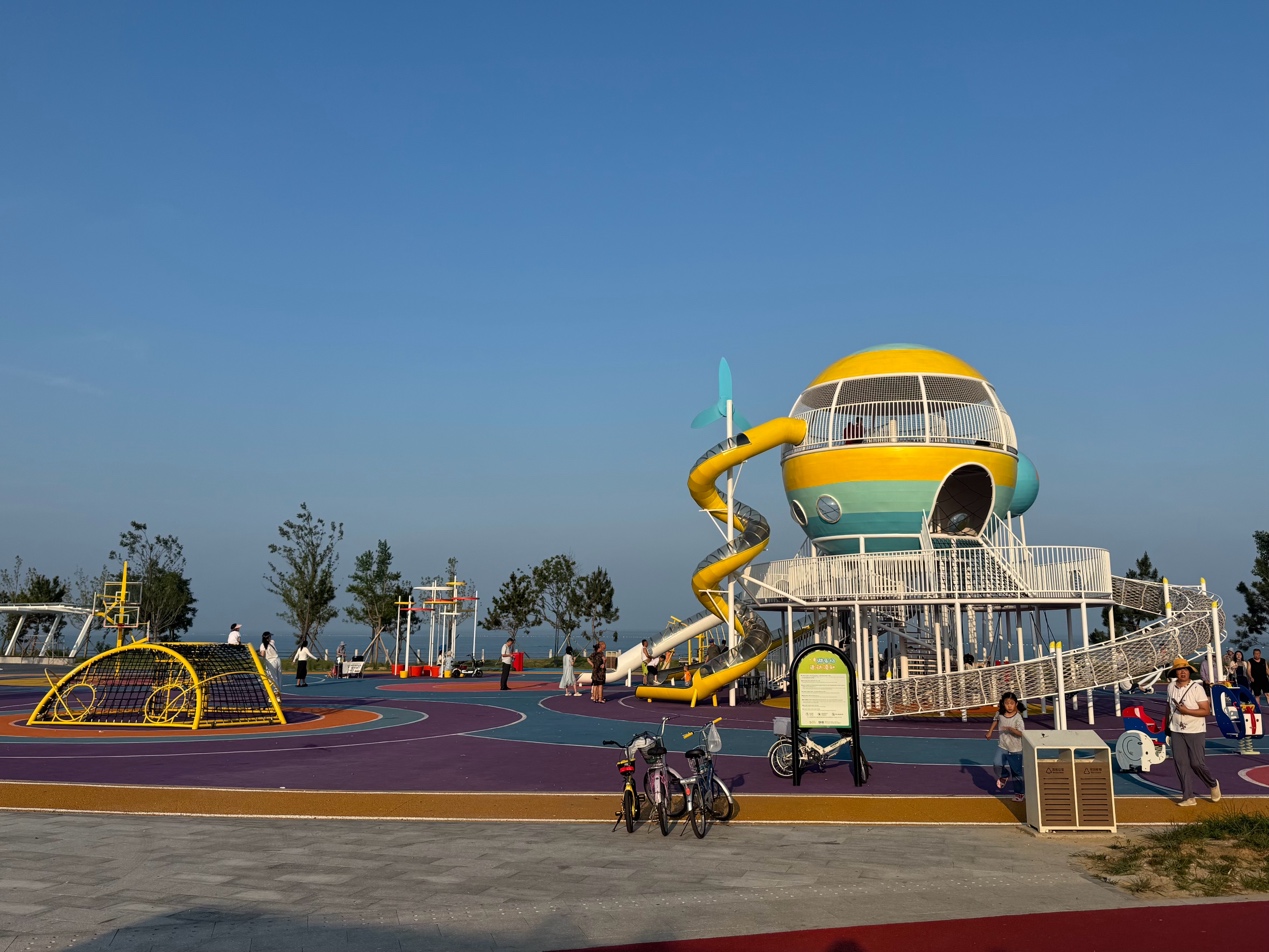当我有娃后的这三年,我发现我居住的城市,儿童友好的口袋公园越来越多,在小区附近,无动力乐园也多了起来。但家乡乳山的儿童友好空间更具吸引力——这里的设施更丰富,活动空间更大,空气质量更好。比如,去年夏天我带娃去海边新建的一座月亮湾童趣乐园游玩,园内滑梯、爬网、秋千、摇椅等户外儿童娱乐设施一应俱全,每天都吸引着很多家庭到这里嬉戏玩耍。
