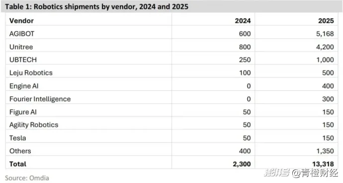 宇树对此并不认可该排位,称网上流传的出货数据为不实信息。宇树披露,去年其人形机器人实际出货量超5500台,本体量产下线超6500台。