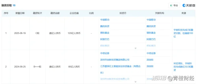 宇树科技已于2025年11月完成了IPO辅导,冲刺进入最后阶段,有望成为A股“人形机器人第一股”。天眼查显示,目前宇树已经完成了10轮融资。最新一轮公开融资是去年6月,吸引了中国移动旗下基金、腾讯、锦秋基金、阿里巴巴、蚂蚁集团、吉利资本等投资方,彼时企业估值超过100亿元。