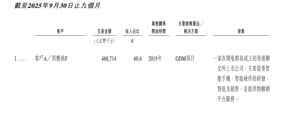 报告期内,小米始终是公司的第一大客户,销售额分别达4.93亿元、5.61亿元和4.69亿元,在总收入中的占比也由2023年的48.6%增至2025年前三季度的60.6%。