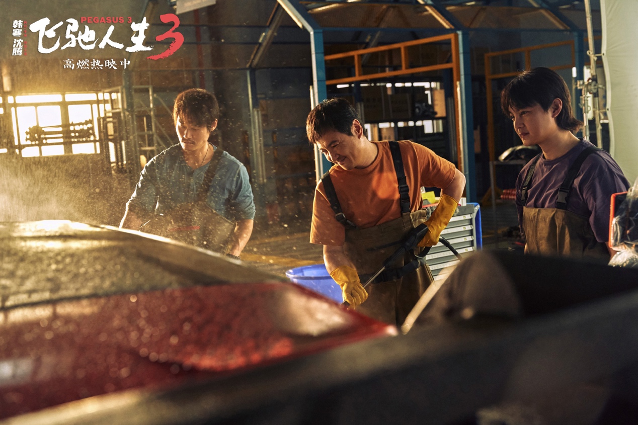 上映第二天,片方发布“七年飞驰”版特辑,飞驰“铁三角”回归,镜头扫过1:1还原复刻的星羽汽修厂,沈腾直呼“不太真实”,尹正感慨“穿越感很重”,回忆杀拉满。张驰等人的目标从第一部“我不想输”到第二部“想输得漂亮点”,这一次则是“拼尽一切也要赢”。