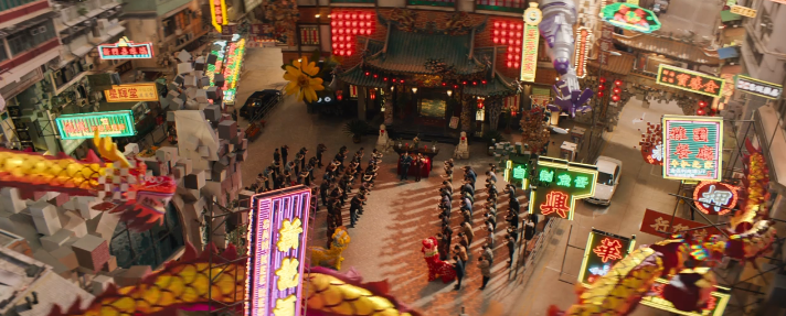 从赛博朋克到末日废土,从霓虹闪烁的都市到混沌崩塌的虚空,影片的美术和特效团队几乎是在同一部电影里拍了十几部不同的电影。