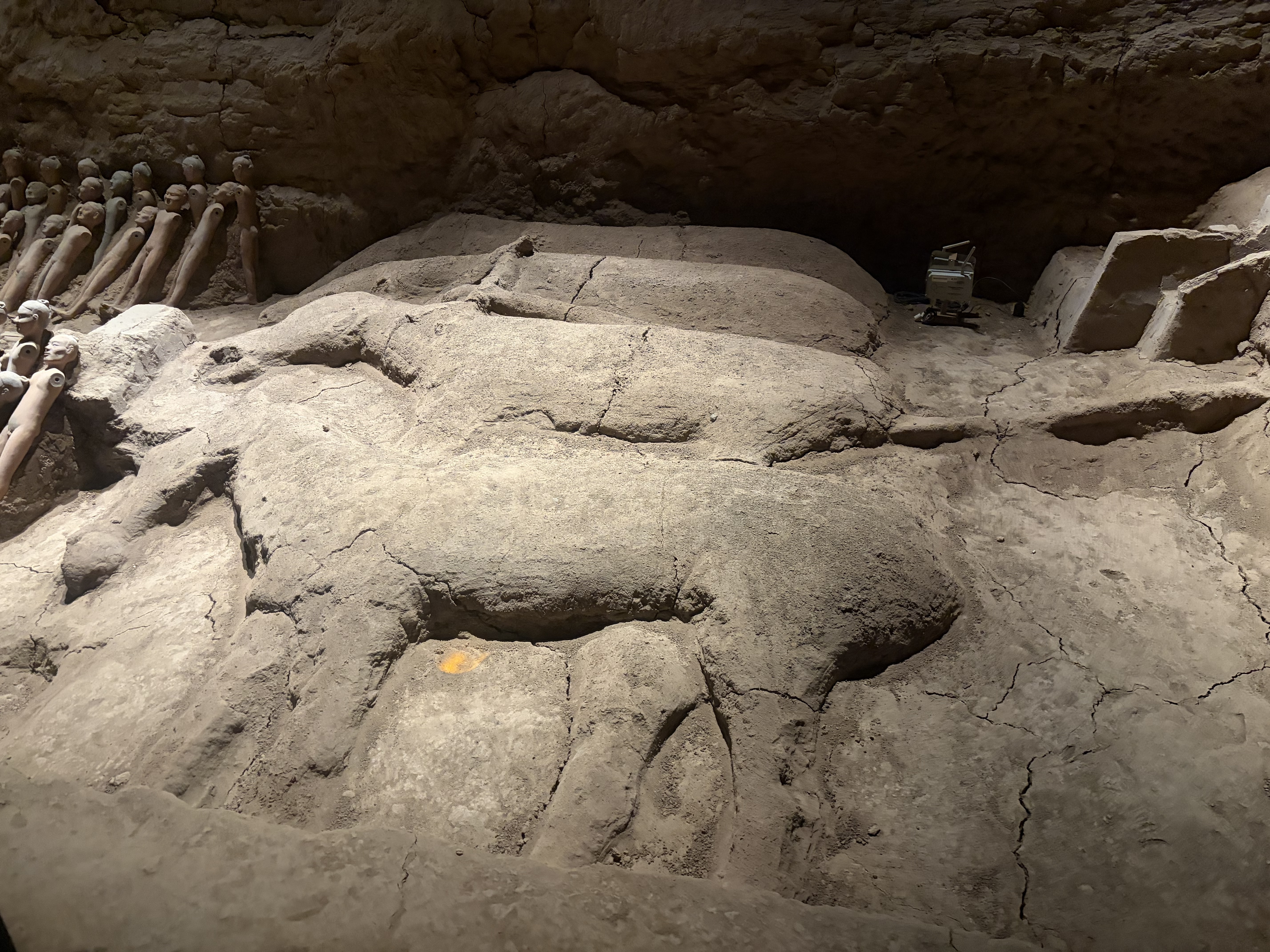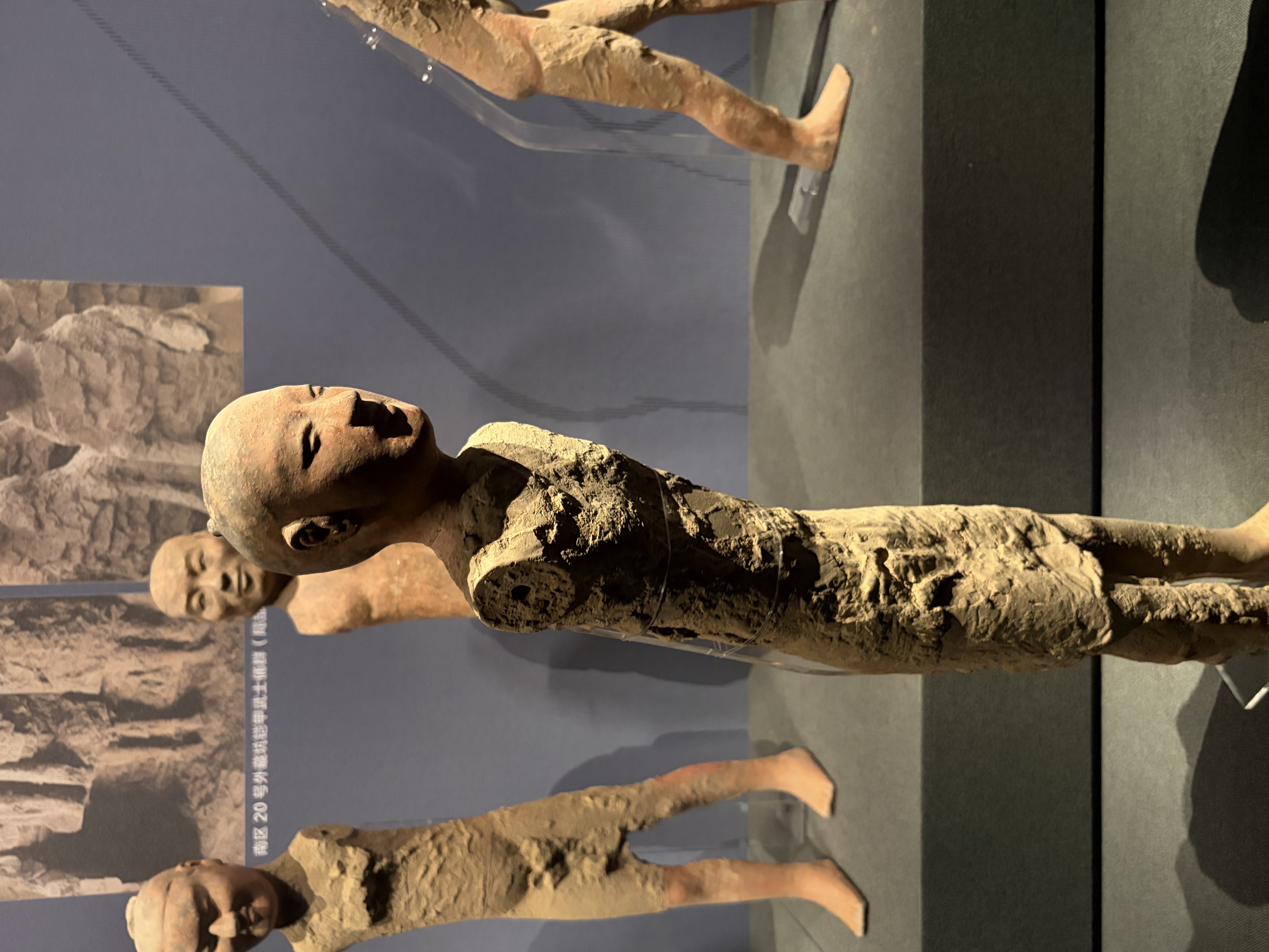 有意思的是,不少人俑赤身裸体,双臂残缺,双腿分开呈倒“U”字形,仿佛正骑跨着什么。