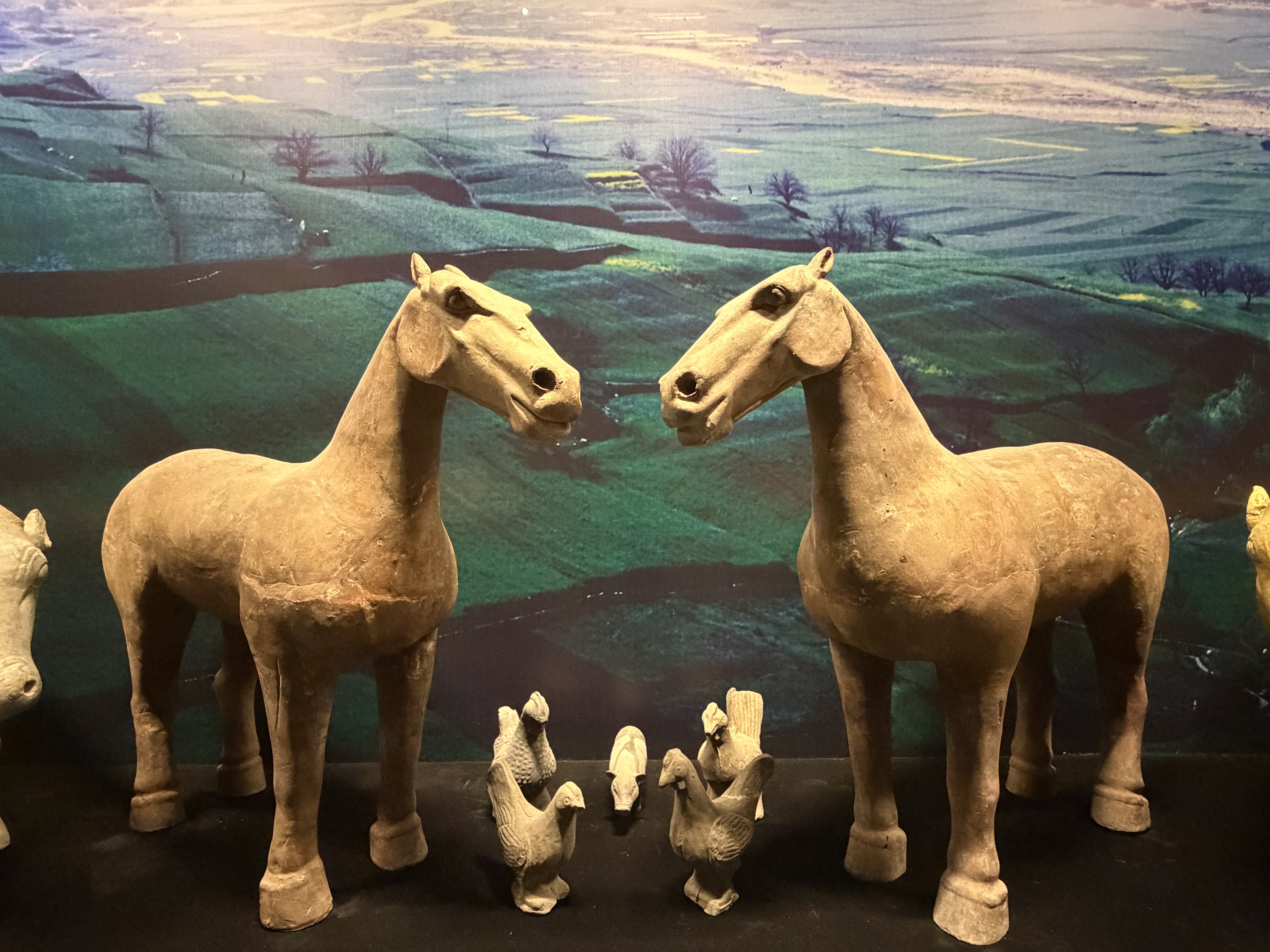 田园背景中的阳陵马俑及家禽俑