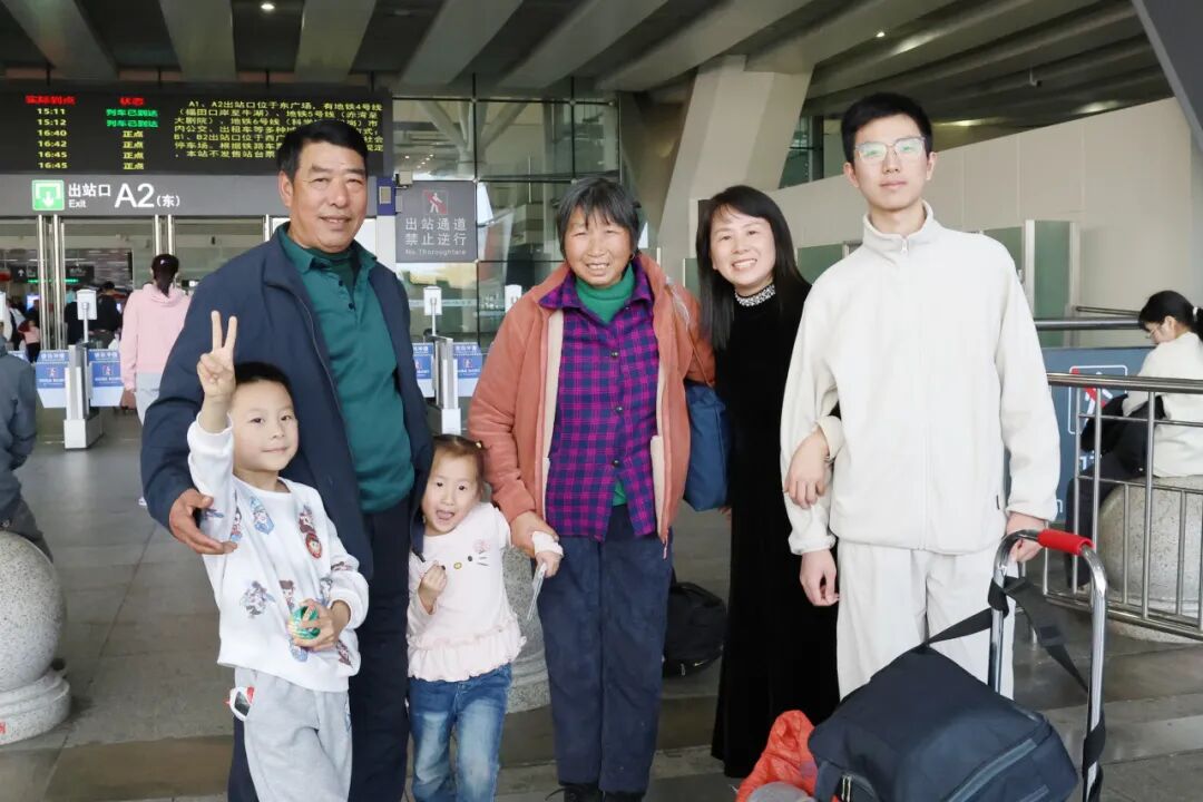 在深圳北站出站口,来自江西的旅客陈先生刚出闸机口,就被等候多时的孙子孙女围住。