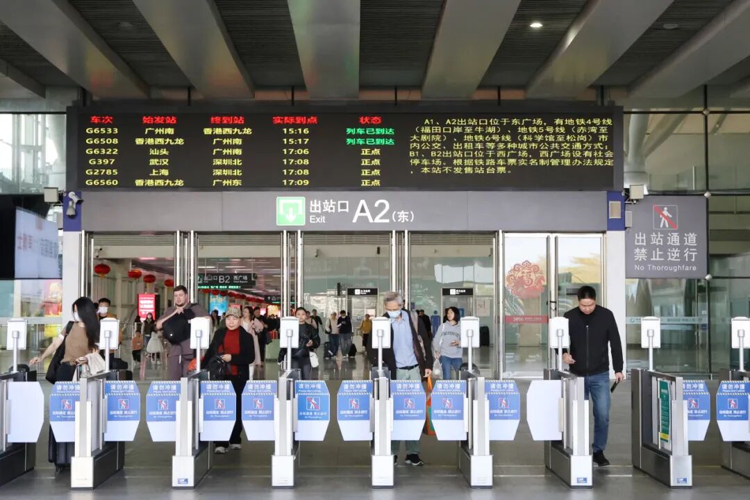 旅客陈女士则在出站口翘首以盼,等待从重庆出发的爸爸和哥哥。她说:“年年都回老家过年,今年想来点不一样的,就是把家人接来深圳。这里天气好,环境也舒适,带他们在周边走一走,也挺好。”