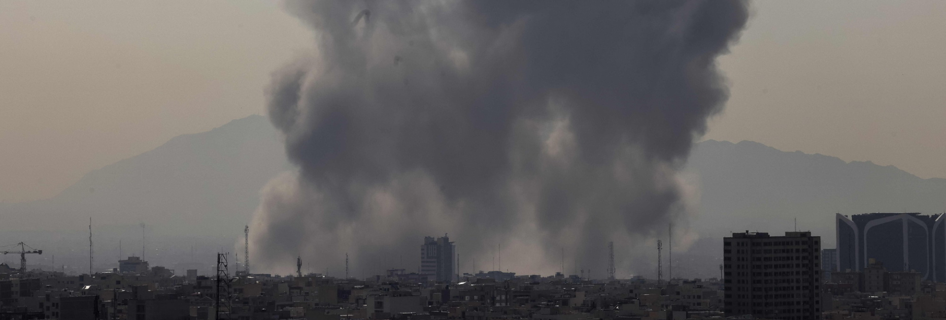 2月28日,伊朗德黑兰,爆炸发生后城市天际线升起浓烟。