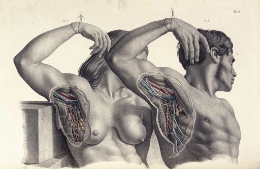 麦克里斯兄弟《绘画外科解剖学》中的腋窝深度解剖图