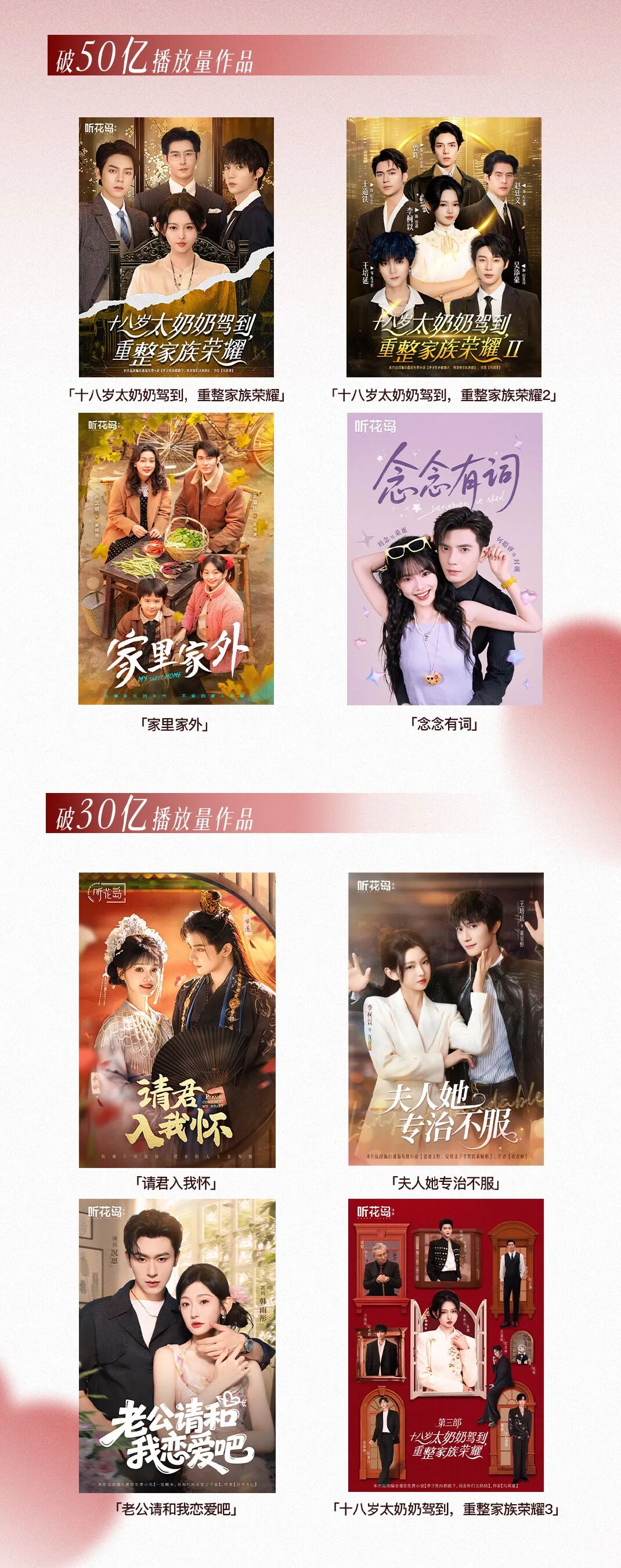 尤其是4部超50亿大爆作品,积累下《念念有词》和《十八岁太奶奶》系列、《家里家外》系列、《夫人她专治不服》系列等明星IP,实打实的短剧第一厂牌。