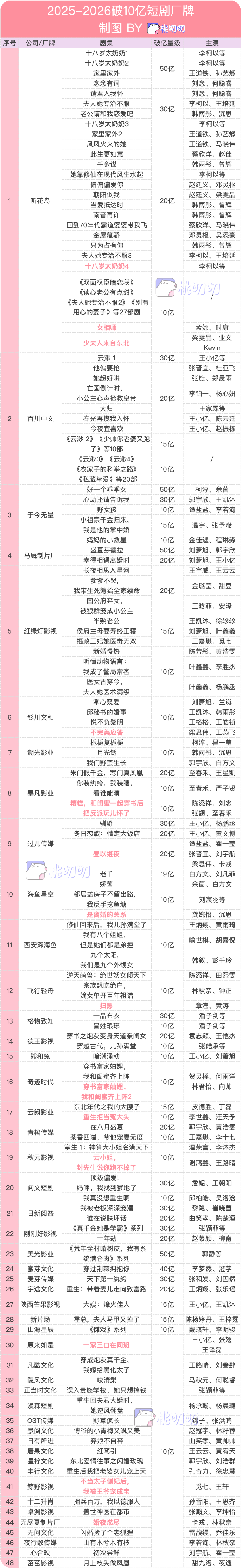 据桃叨叨统计,现役竖短破亿俱乐部超48家,你追我赶之间,梯队在变、新贵频出。