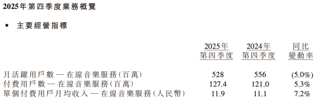 财报现实,整个2025年TME的移动端月活跃用户(MAU)下降到了5.28亿,同比减少了5%。