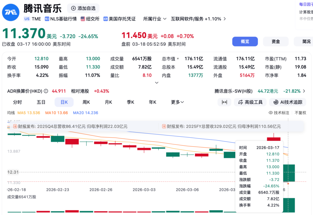 3月17日,腾讯音乐(以下简称TME)发布了2025年第四季度及全年财报。