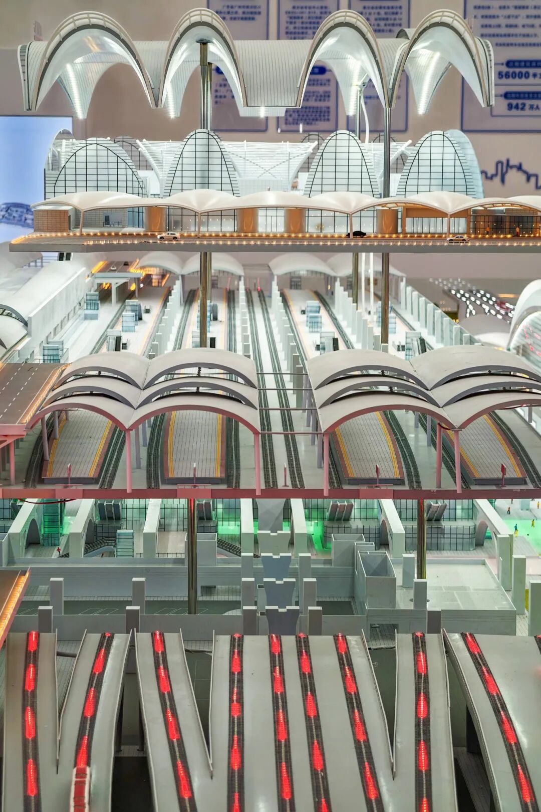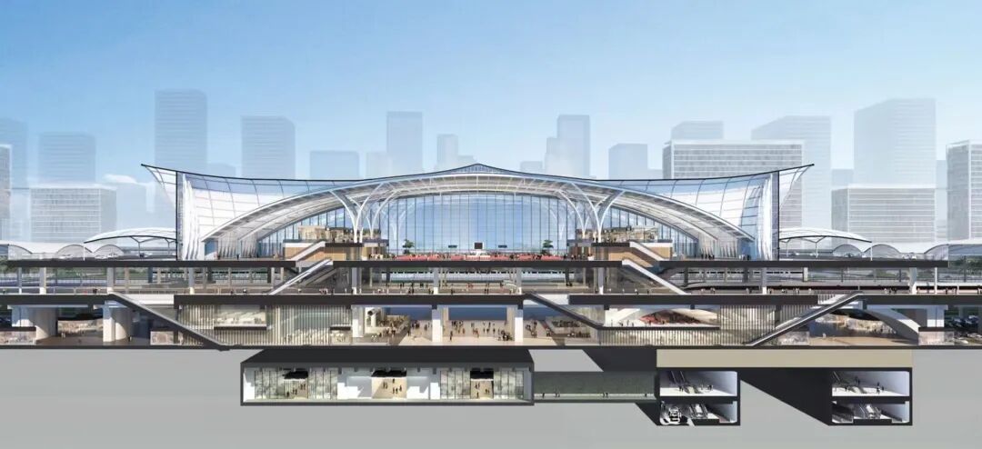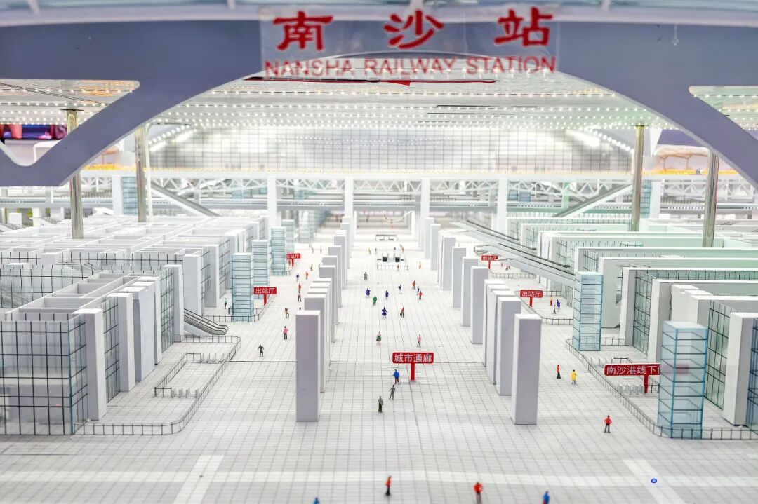 通廊下方配套南沙港铁路线下候车厅、深江铁路出站厅。
