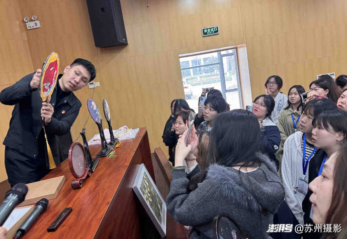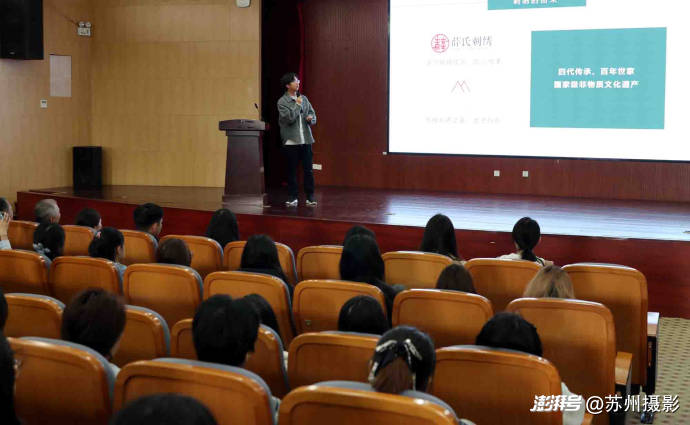 在随后的互动环节中,现场学员围绕技艺传承、品牌创业、传统工艺与快节奏时代的融合等话题,与分享嘉宾进行了深入交流。镇湖刺绣协会秘书长、党支部副书记裘星也一同参与互动,介绍了苏绣小镇的人才队伍、绣庄特色以及政府产业扶持政策,勉励学员们珍惜学习机会,以守艺之心、创新之志,投身非遗传承事业。