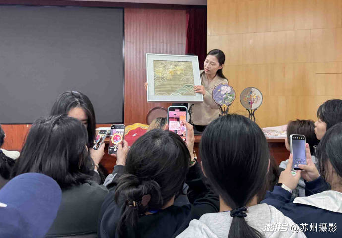 为深化苏锦两地刺绣人才协同培养,搭建青年非遗传承人交流平台,使来自锦州的学员更好的了解苏绣的传承脉络,激发创新思维,同时以党建引领凝聚两地非遗传承合力,3月23日下午,锦州苏绣培训班临时党支部、江苏省苏州技师学院第六党支部、苏州高新区镇湖刺绣协会党支部在苏州技师学院开展党建共建,联合举办“针承新意 —— 青年守艺人分享会”。60名锦州苏绣学员与三个支部党员代表、青年非遗传承人齐聚一堂,共品指尖匠心、共探传承之路,为苏锦两地苏绣技艺引育与人才共育注入青春活力。