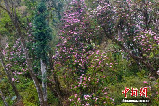 3月28日,高山峡谷间盛放的高山杜鹃花。