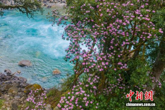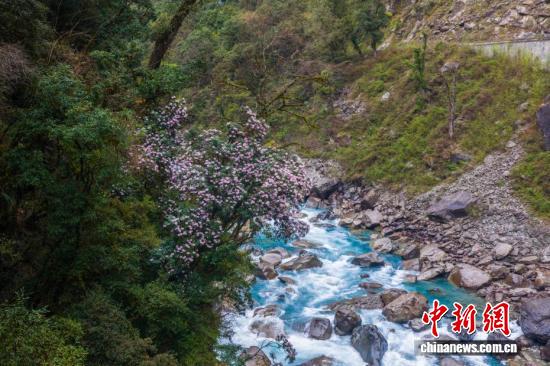 近日,流经西藏那曲市嘉黎县至林芝市波密县的易贡藏布(也称易贡河)流域,迎来高山杜鹃最佳观赏期。作为雅鲁藏布江的二级支流,易贡藏布两岸山峦叠嶂,高山峡谷间,成片高山杜鹃竞相绽放。粉白、紫红的花朵点缀于苍松翠柏之间,与蜿蜒的河流相互映衬,构成一幅壮丽的高原生态画卷。图为3月28日,奔腾的易贡藏布与盛开的高山杜鹃。